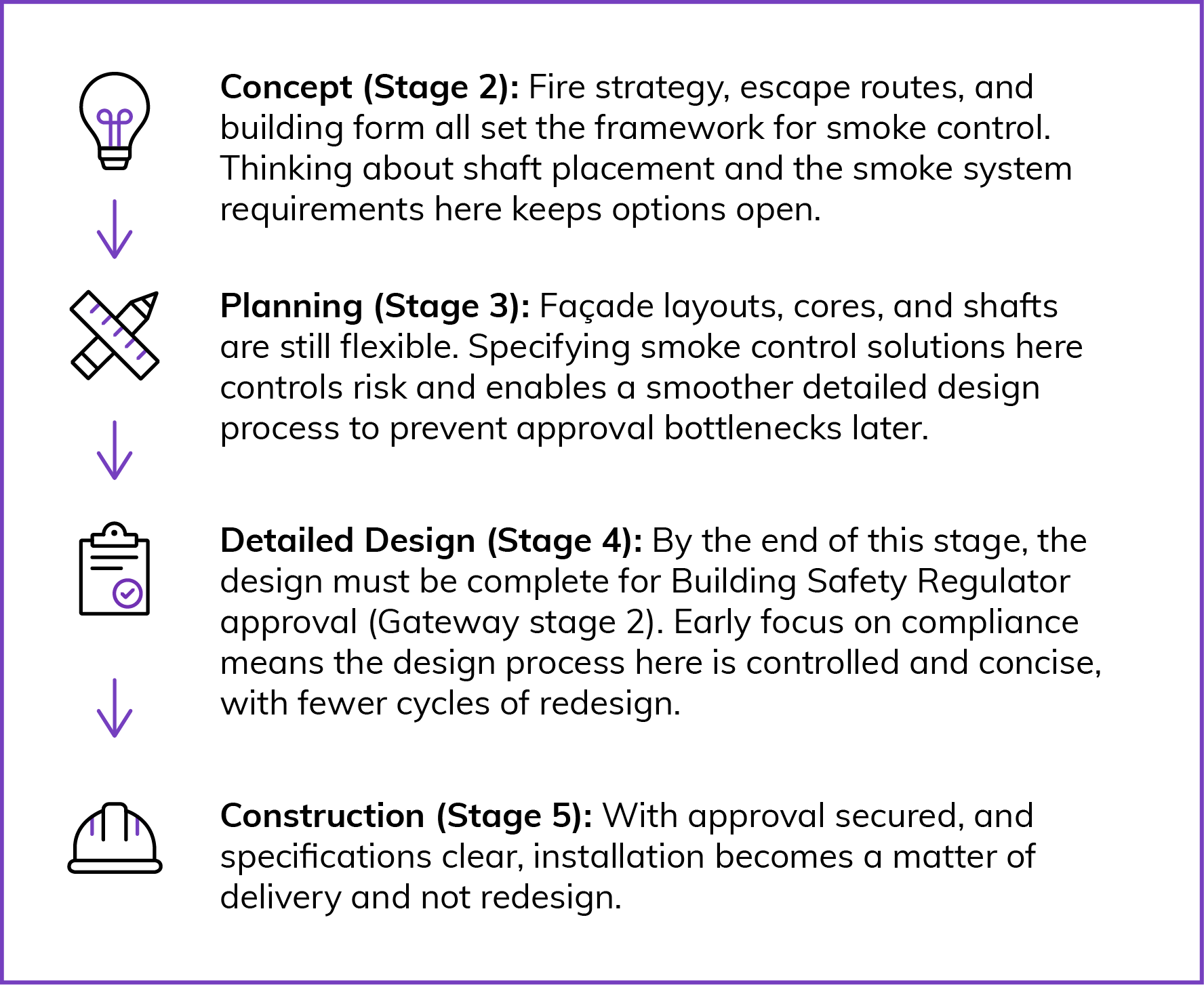Smoke control can’t be an afterthought – it must be embedded early enough in the RIBA journey to flow smoothly into BSR sign-off.